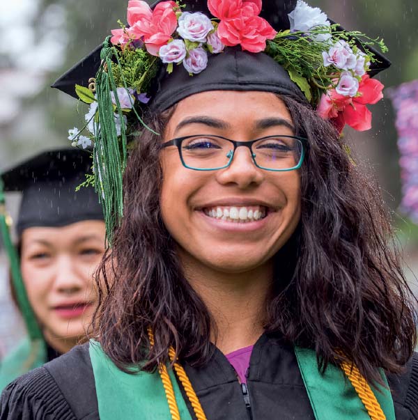 Donning the cap and gown symbolizes a huge accomplishment. And what better place and time—in front of a graduate’s biggest fans—for another burst of creativity? Graduates decorate their caps wildly for their special day, flaunting their majors, backgrounds, or just an eagerness to party. It’s a chance to exclaim pride, relief, exhaustion, and excitement for the future.